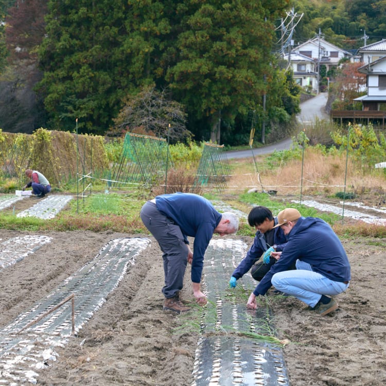 “You’ll never believe this,” says Hanjo Tomohiro, crouching low as he demonstrates to us city folk how to plant rows of garlic. “I used to work in the vegetables section of a large department store in central Tokyo. They had nice enough vegetables, I guess, but working there—stuck inside all day, dark outside when I left—got depressing after a while.”
