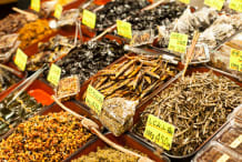 En el mercado de Ameyoko , parcialmente al aire libre y a escasos minutos de la estación de Ueno, podrás ser testigo del arte de los comerciantes vendiendo sus productos. Observa a los vendedores tatakiuri en acción, con su ritual para vender bolsas de chocolatinas por 1000 yenes, mientras degustas una brocheta de frutas.